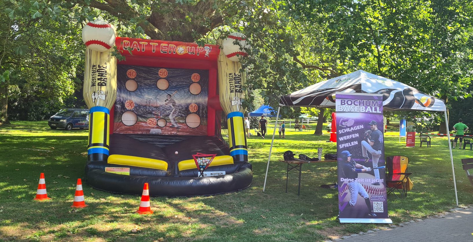 Am 26. September 2025 waren die Dortmund Rhinos gemeinsam mit der neuen aufblasbaren Schlagmuschel der Westfalenbande zu Gast beim Schulfest der Kirchderner Grundschule.