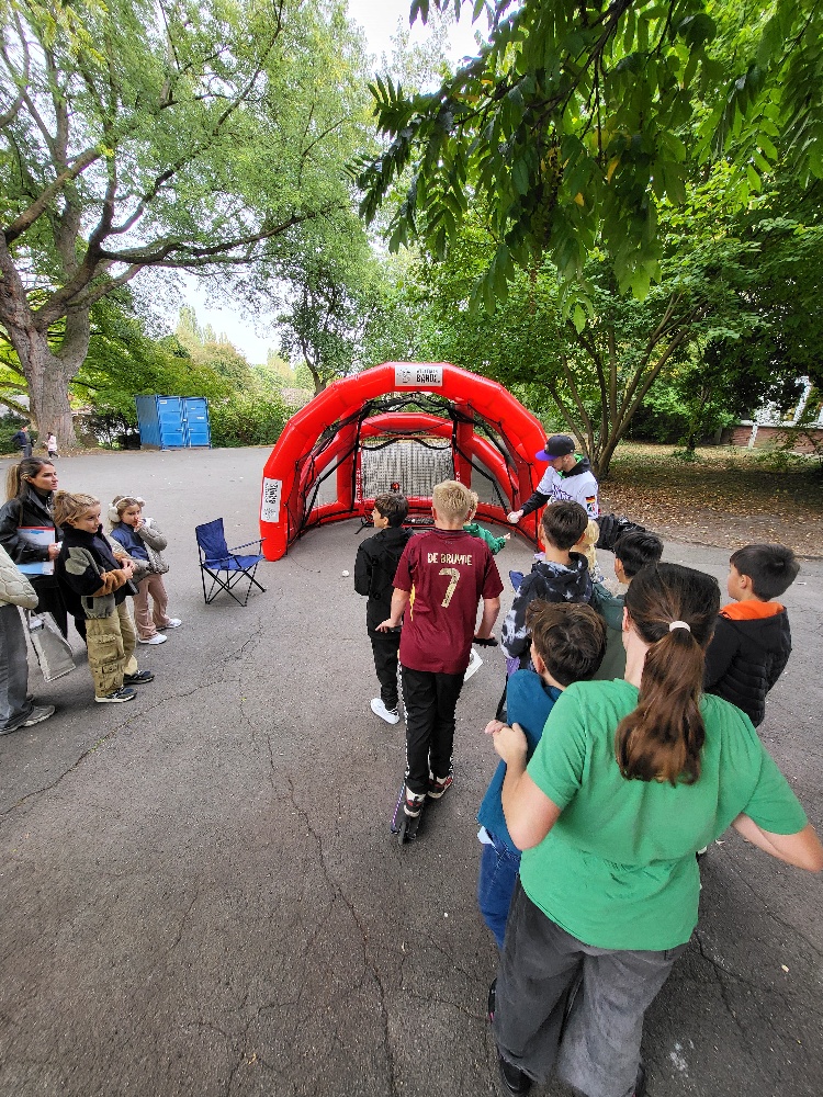 Am 26. September 2025 waren die Dortmund Rhinos gemeinsam mit der neuen aufblasbaren Schlagmuschel der Westfalenbande zu Gast beim Schulfest der Kirchderner Grundschule.