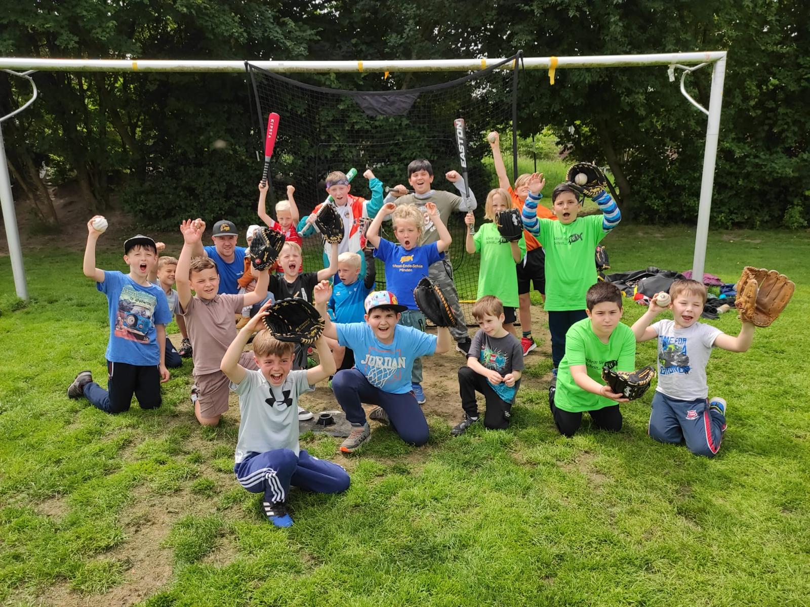 Im Rahmen der Sportprojektwoche an der Michael Ende Grundschule in Hahlen haben die Minden Millers mit einer Gruppe von 18 Kindern Baseball gespielt.