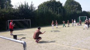 Mit dem Nightgame und dem Schwimmbad noch in den Knochen, begann das Training am Donnerstag ein wenig verspätet aber nicht schwächer als die Tage zuvor auch. In der Trainingsgruppe 1 war bis zum Donnerstag ein riesen Fortschritt zu sehen gewesen, der zur Freude aller sich auch in den Spielen wiederfand. Dennis Stechmann sicherte sich wie die vergangenen Tage auch den Tagessieg und Spielte am Freitag im Finale gegen die Snakes von Marcus Börner. Ein weiteres Highlight im Camp war das Lagerfeuer mit Stockbrot und Marshmallows. Zum Abschluss sangen alle Kids den Song „Nur nach Hause gehen wir nicht“ von Frank Zander.